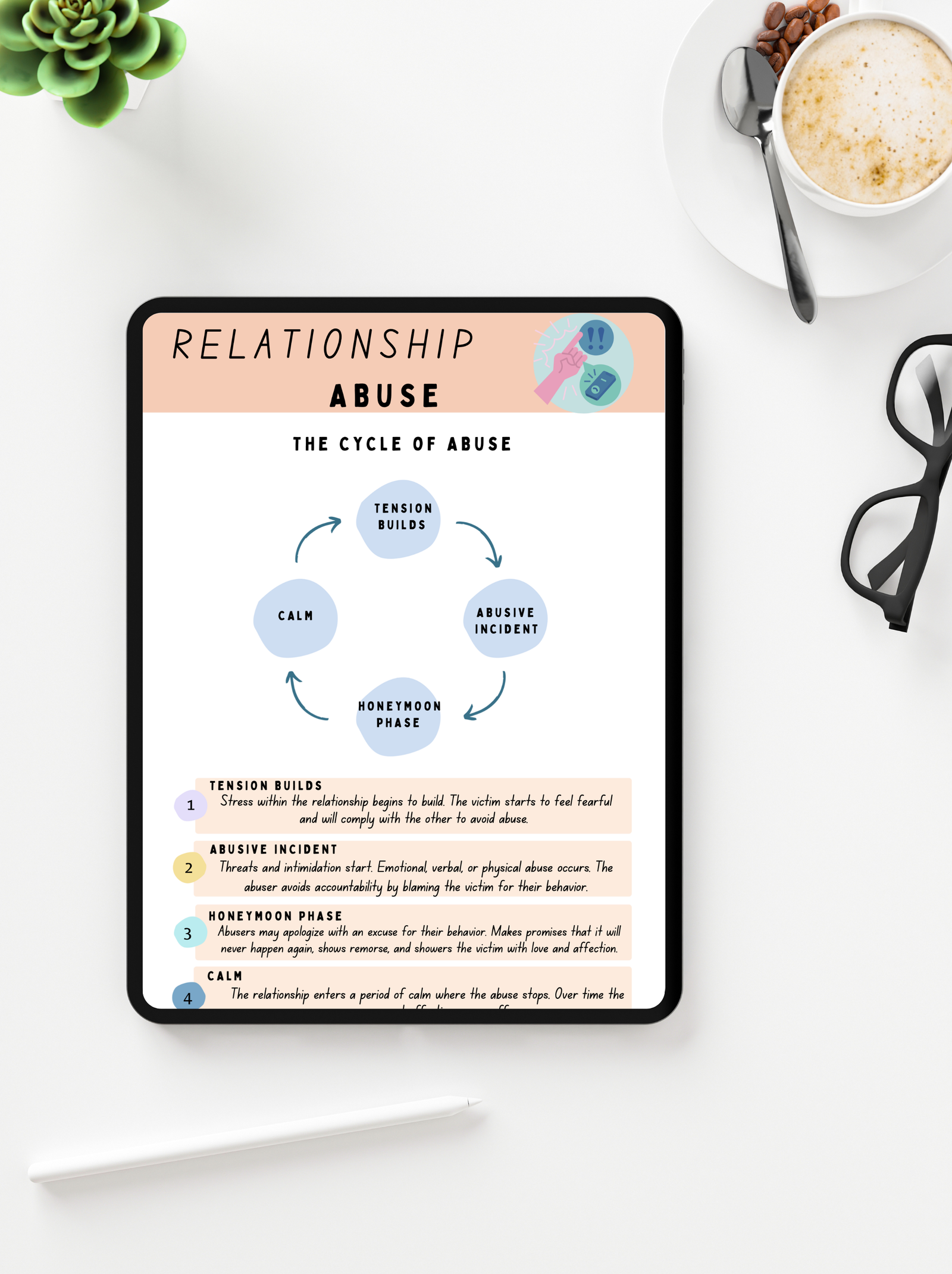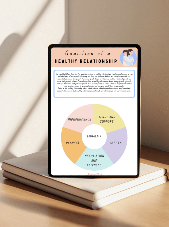 This printable healthy vs unhealthy relationships workbook is an educational tool and does not replace
